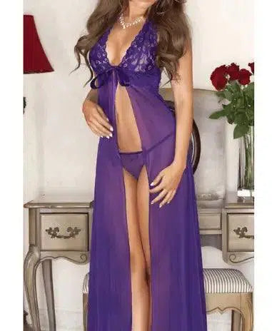 alter dantel maksi etek önden yırtmaçlı pijama iç çamaşırı