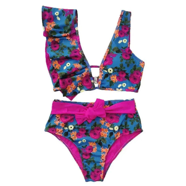 Asimetrik Fırfırlı Yüksek Bel Bikini Mayo