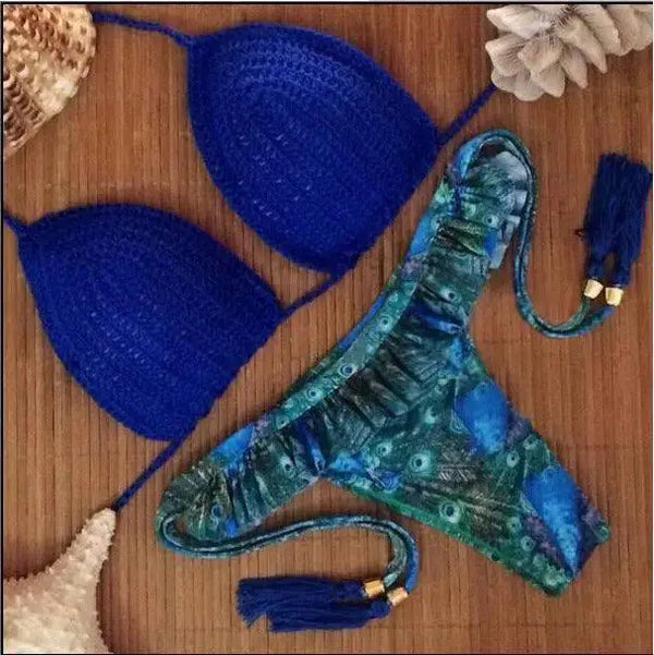 Avrupa ve Amerikan Örme Bikini Dantel Çiçek Baskı Split