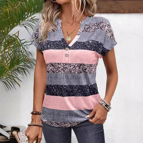 Avrupa Ve Amerika Yaz Kısa Kollu Çizgili V Yaka 3D