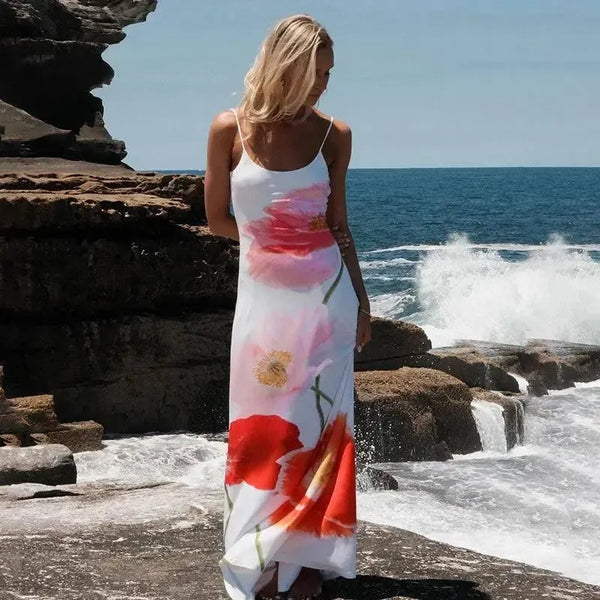 Baskılı Boyundan Bağlamalı Maxi Elbise - Yaz Plaj Partisi Giyimi