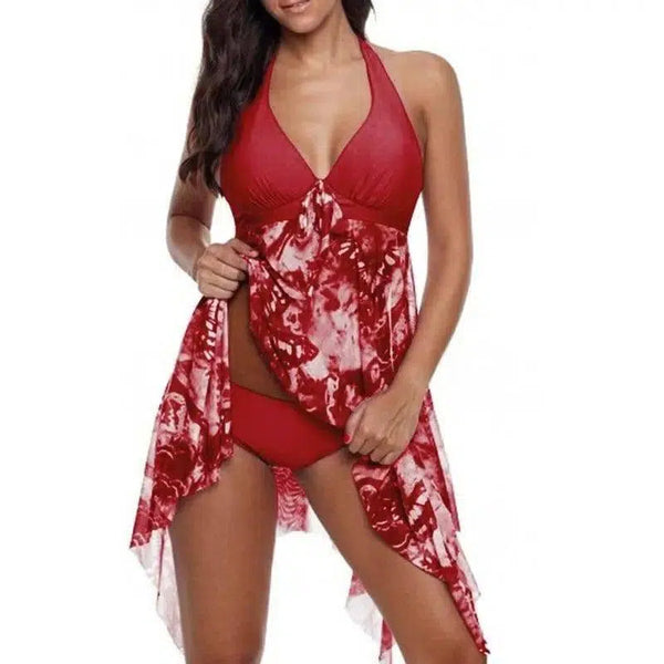 Bikini Düzensiz Etek Yırtmaçlı Çiçekli Mayo