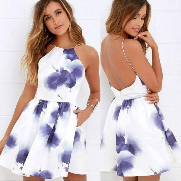 Boho Sling Sırtı Açık Bel Mini Elbise