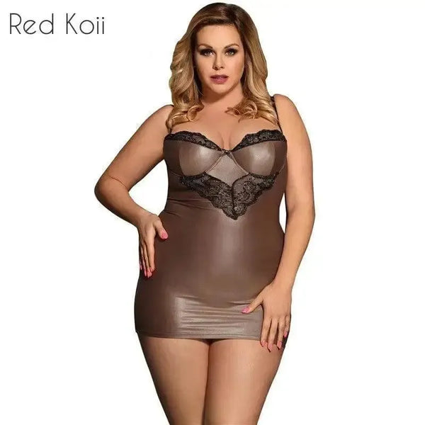 Büyük Beden Suni Deri İç Çamaşırı Gecelik