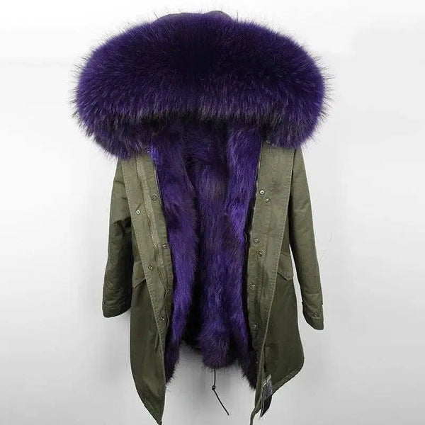 - Yaka: Lüks büyük boy rakun kürkü