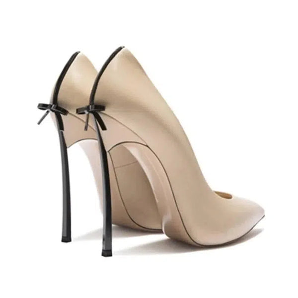 Kadın Sivri Burunlu Papyonlu İnce Yüksek Topuklu Pompalar