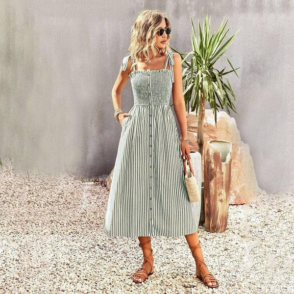 - Stil: Kadınlar için zarif çizgili slip elbise