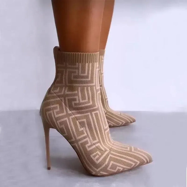 Moda Ayak Bileği Botları Kadın Uyluk Yüksek Topuk Botları Sivri Burun