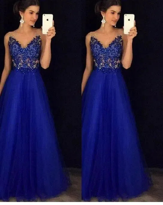Ürün Açıklaması: Mavi Şifon Sırtı Açık Boncuklu Balo Elbisesi