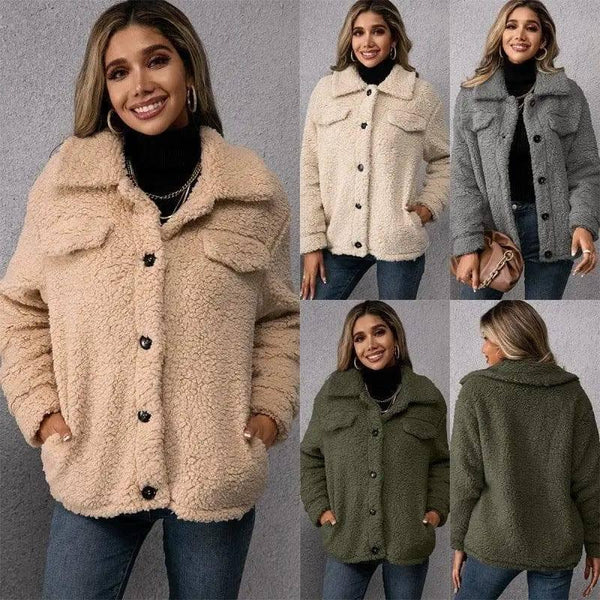 Gevşek Günlük Yaka Peluş Ceket Kuzu Polar Mont