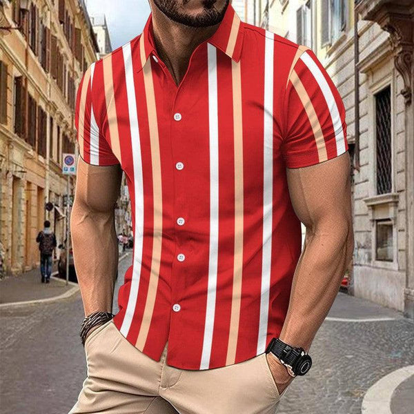 Günlük Çizgili Baskılı Kısa Kollu Gömlek Yaz Yaka Zeytin Yeşili / 3XL