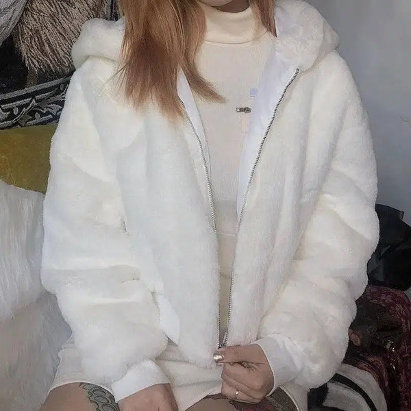 Günlük Peluş Kapüşonlu Kısa Peluş Mont Kadın