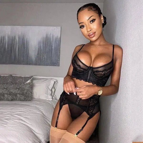 Ürün Açıklaması: Kadın Dantel Kirpik Dikiş Sling Lingerie Üç parçalı