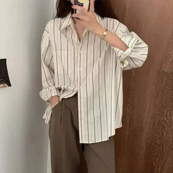Kadın Çizgili Düğmeli Günlük Gömlek