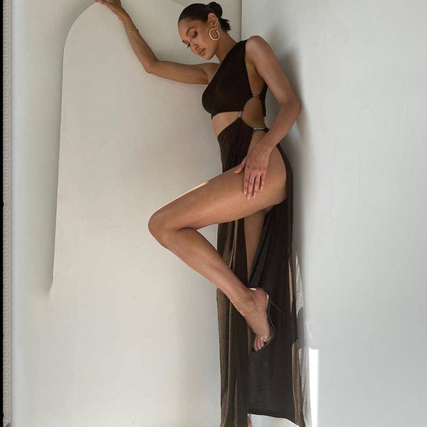 Kadın Ağırbaşlı Hollow Eğimli Omuz Elbise