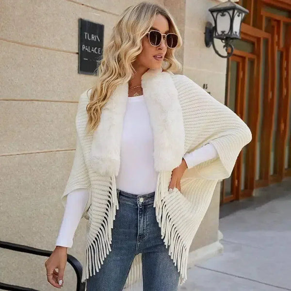 Ürün Açıklaması: Kadın Kürk Yaka Püskül Şal Örme
