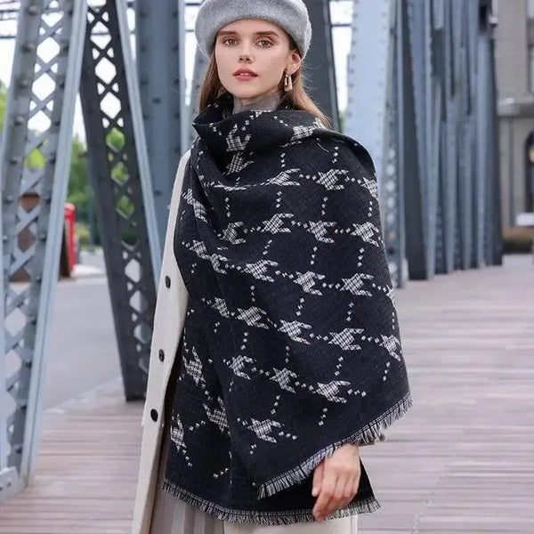 Kadın Modası Baskılı Balıksırtı Sıcak Tutan Eşarp
