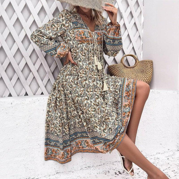 Kadın Modası Günlük Tatil Uzun Kollu Baskılı Maksi