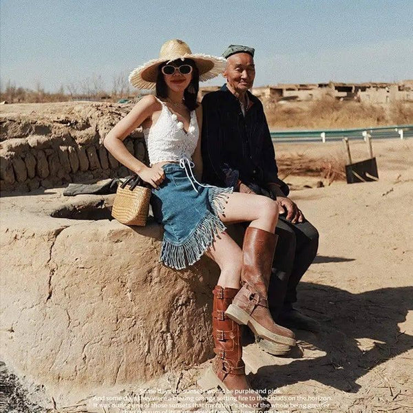 Kadın Retro Düzensiz Püsküllü Denim Etek