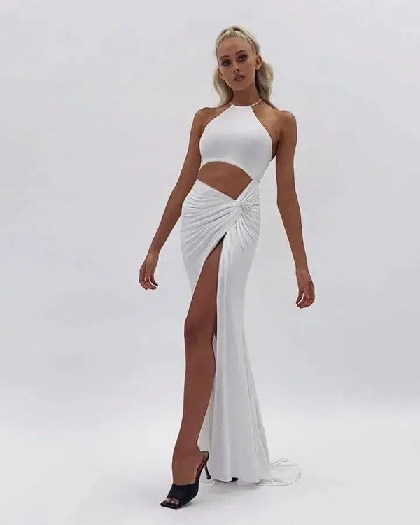 Kadın Modası Halter Yaka Kesim Bağcıklı Uzun Etek