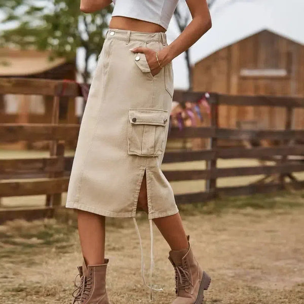 Kadın Denim Bağcıklı Etek Günlük Giyim