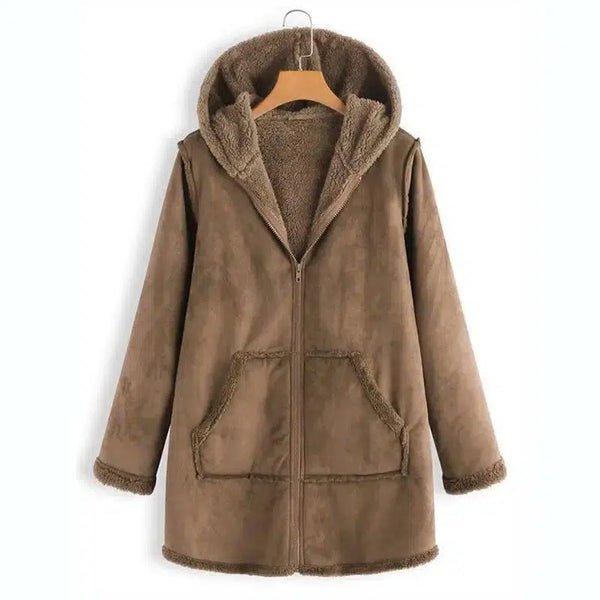 Kışlık Cepli Sıcak Tutan Peluş Kapüşonlu Mont