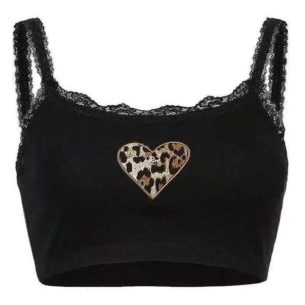 Kalp Tasarımlı Dantel Kesimli Crop Top