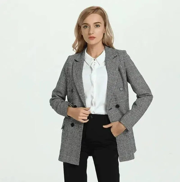 Kadın Ekose Blazer Ceket Günlük Giyim