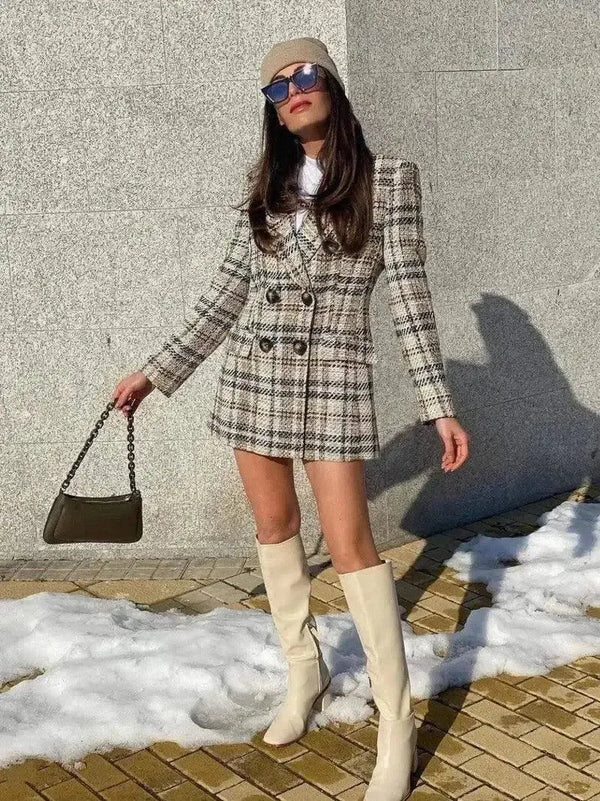 - Giysi türü: Ekose blazer tarzı mini elbise