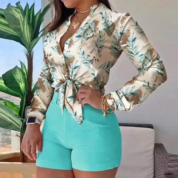 Çiçekli Önden Bağlamalı Bluz & Fitted Şort Takım
