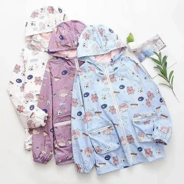 Karikatür Baskılı Çocuk Kapüşonlu Yağmurluk