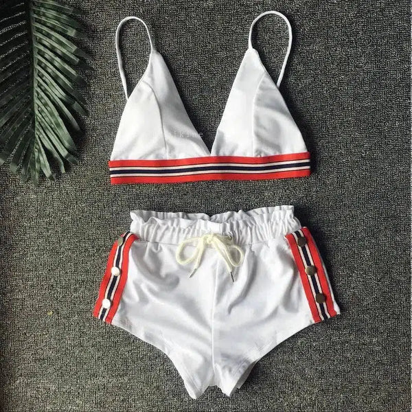 - Tasarım: Bölmeli mayo stiline sahip üç parçalı bikini seti