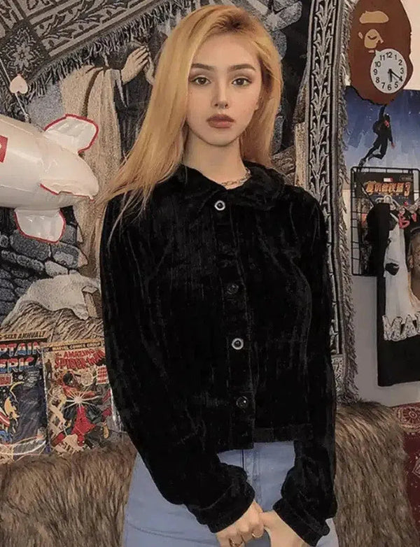 Kadınlar için Kadife Düğmeli Günlük Ceket