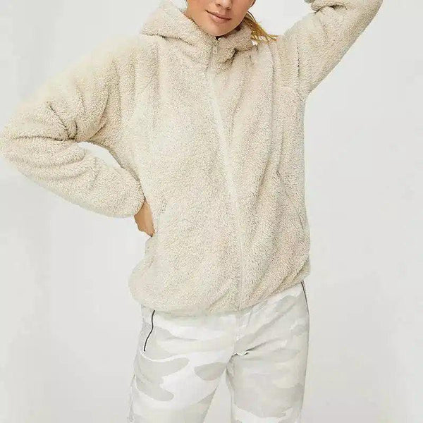 Günlük Düz Renk Uzun Kollu Polar Kapüşonlu Üst