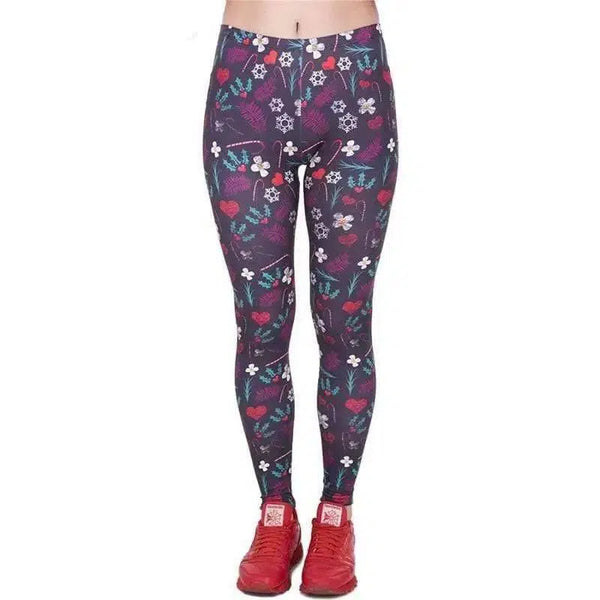 Noel baskılı Kapriler yüksek belli spor Tayt