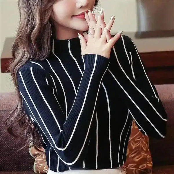 Kadın Çizgili Balıkçı Yaka Kazak