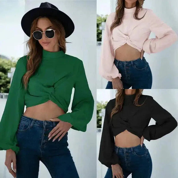 Bayan Düğümlü Kırpık Üst Uzun Kollu