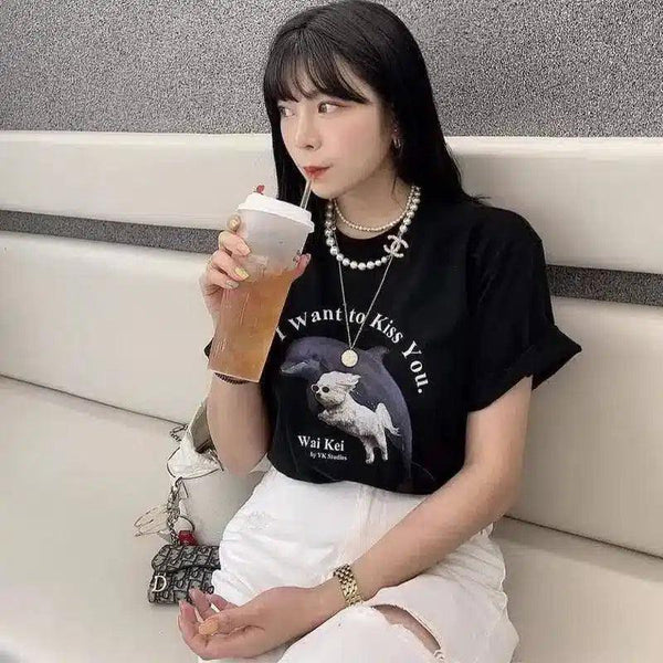 Kadınlar için Grafik Baskılı Pamuklu Tişört