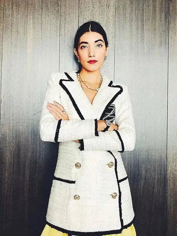 - Kapama: Altın ton düğmeli kruvaze ön kısım