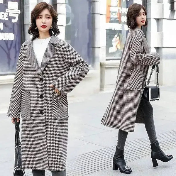 - Göz Alıcı Doku: Palto, giysiye derinlik katan dokunsal ve görsel olarak ilgi çekici bir deneyim sunan ayırt edici bir kazayağı desenine sahiptir.