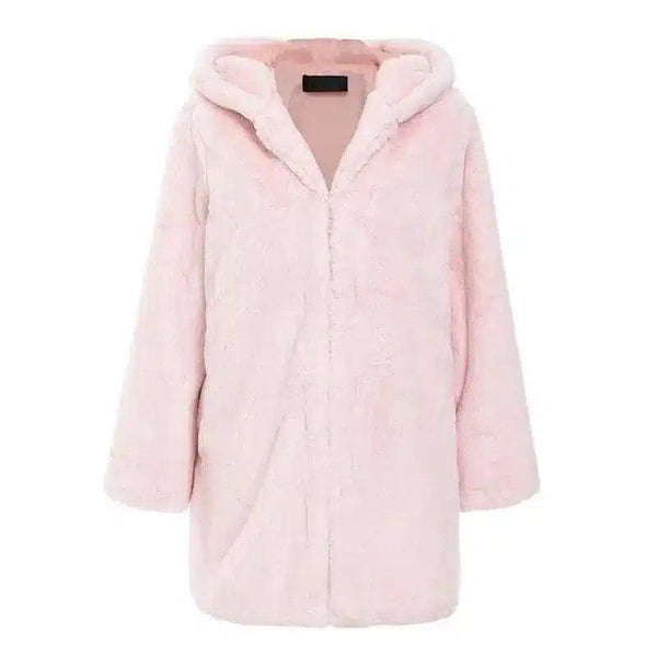 Suni Kürk Peluş Kapüşonlu Kürk Kaban Kadın Kabarık Kaban