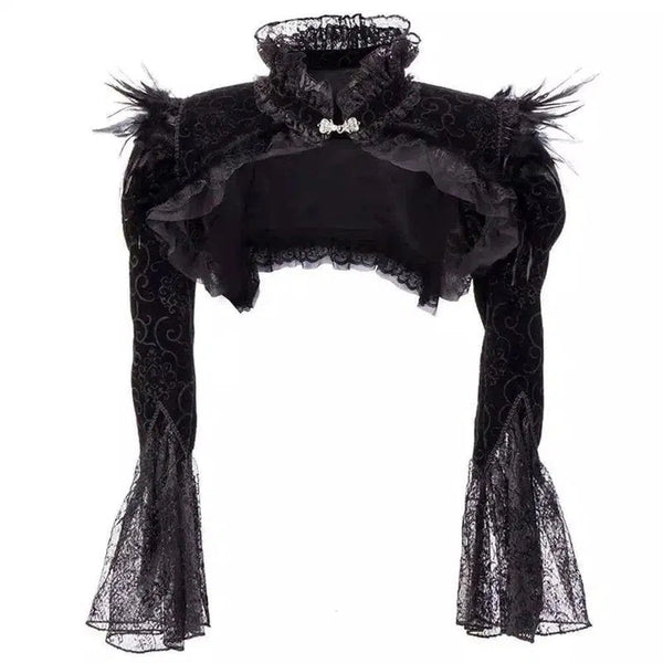 - Yaka veya Omuz Stili: Kuş tüyü süslemeli yüksek dantel yaka