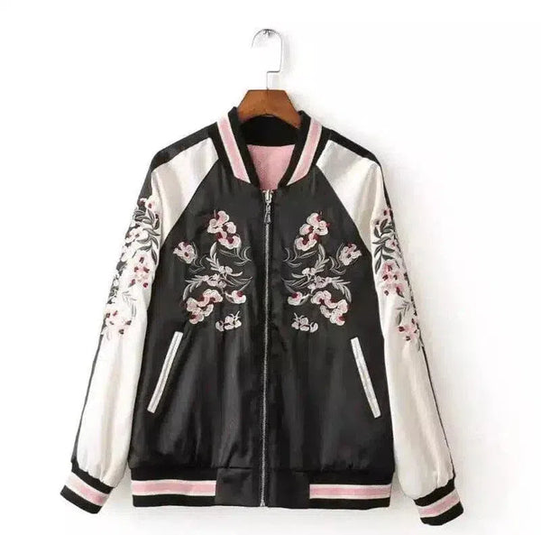 Fermuar Kapamalı İşlemeli Çiçekli Bomber Ceket