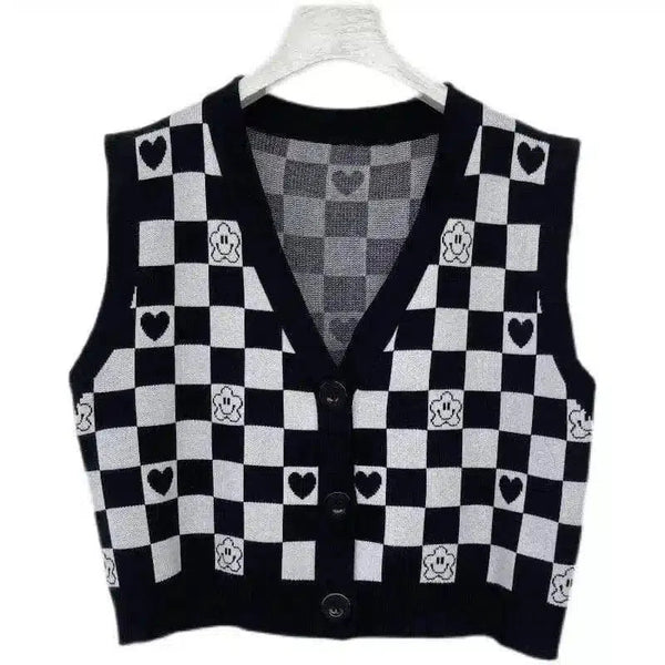 Önü Düğmeli Örme Dama Tahtası Yelek