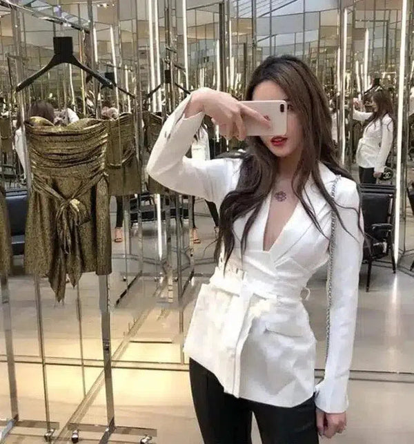 Beyaz Kuşaklı Blazer - Şık ve Modern