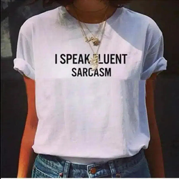 Bold Statement Baskı: Eğlenceli "I SPEAK FLUENT SARCASM" baskısı ile bir açıklama yapın, bir konuşma başlatıcı ve esprili kişiliğinizin bir vitrini.