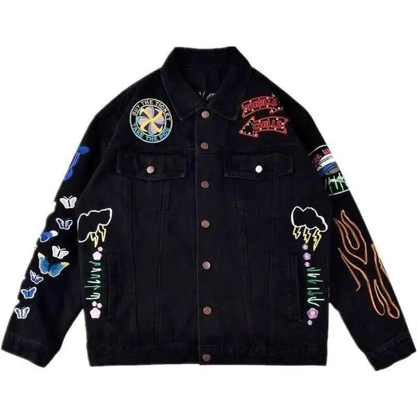 İşlemeli kot ceket