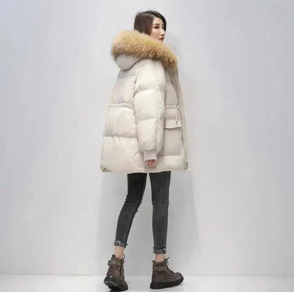 Suni Kürk Kapüşonlu Kışlık Puffer Ceket