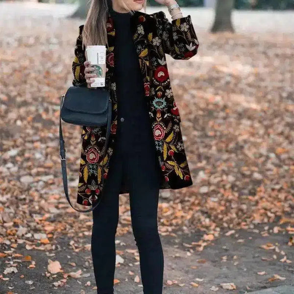 Çiçek Desenli Kadın Uzun Kaban