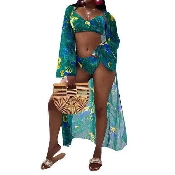 Kadın Üç Parçalı Baskılı Bikini Split Mayo Kadın